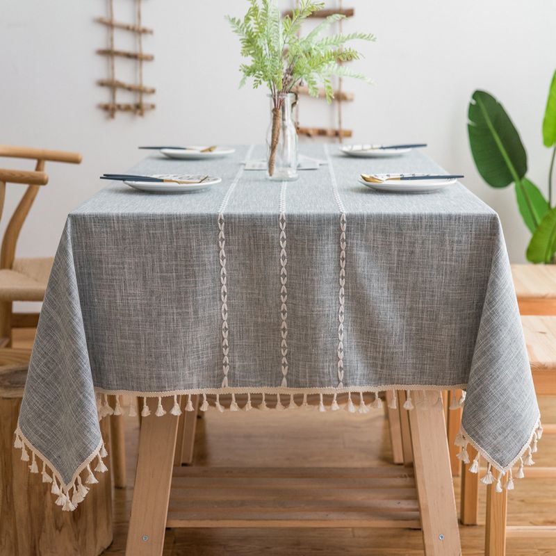 Semplice tovaglia da pranzo ricamata in cotone e lino, piccola e fresca, rettangolare, per soggiorno, tavolo da caffè