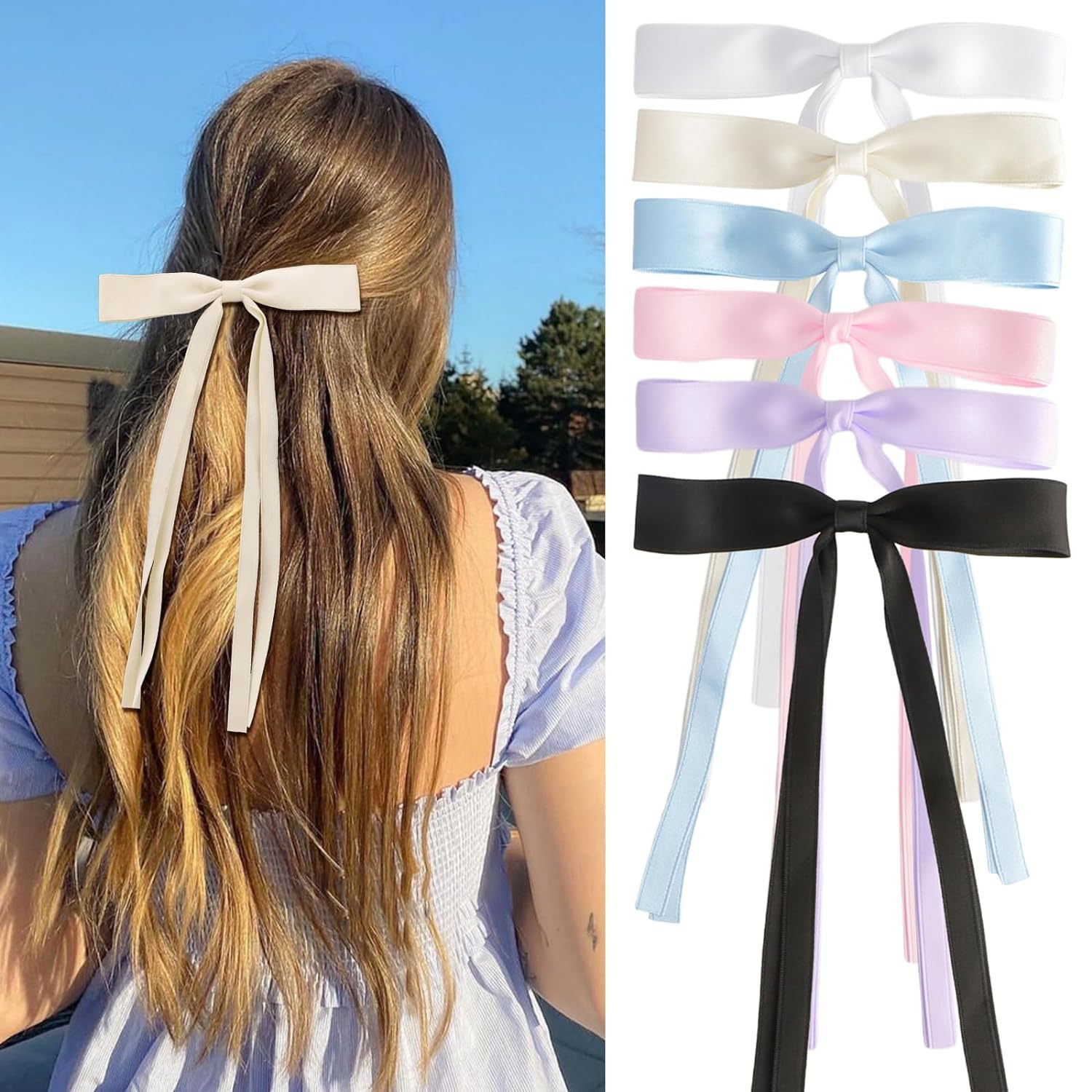 Chic Korean Design:This hair accessory set features a chic Korean design, making it a trendy addition to any outfit. The butterfly knot and ribbon details add a sweet and fresh touch. Versatile Hair Clips:The set includes six versatile hair clips - one straight clip, one duckbill clip, and four ribbon clips. These clips can be used to create a variety of hairstyles, from simple braids to updos. High-Quality Silk Ribbon:Made from high-quality silk ribbon, these hair clips are soft to the touch and durable. They won't easily break or lose their shape over time. Sweet and Fresh Style:With their sweet and fresh style, these hair clips are perfect for casual day-to-day wear or special occasions. They can enhance any outfit, making it more stylish and charming. Cross-Border Popularity:These hair clips have gained popularity not only in Korea but also in other countries. They're a hot item among fashion-forward individuals worldwide. Compact and Lightweight:These hair clips are compact and lightweight, making them easy to carry around. You can easily change your hairstyle on the go without any hassle.