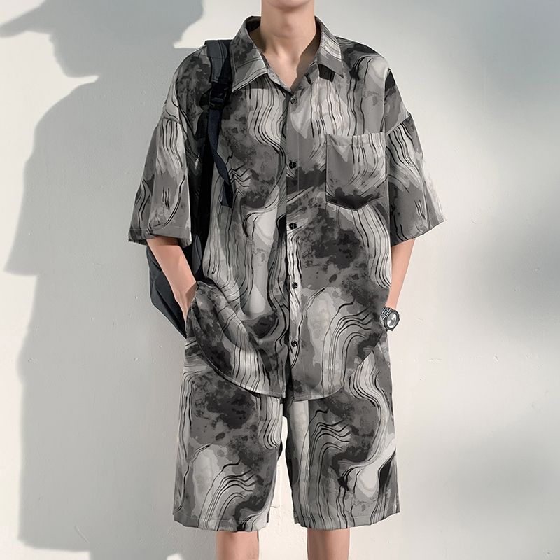 Summer Floral Shirt Men's Set Men's Beach Vacation Men's Pants Ice Silk New Shorts Short Sleeve
