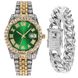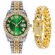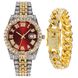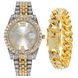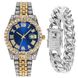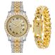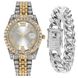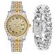 Set da 2 pezzi da uomo con bracciale cubano in oro e ricco intarsio di diamanti, orologio alla moda Hip Hop
