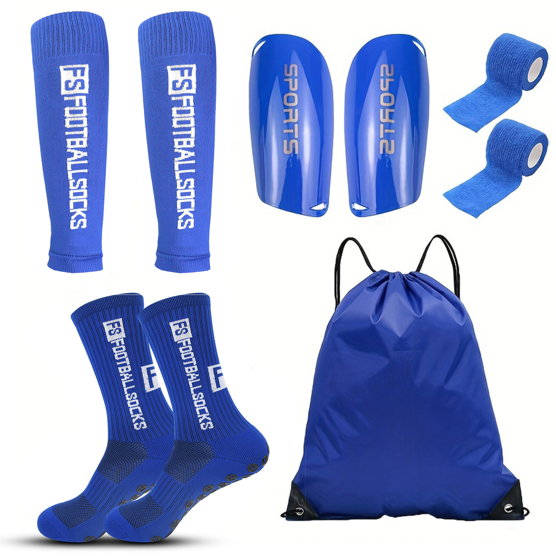 Set da allenamento per il calcio da 5 pezzi: calzini antiscivolo, gambali, parastinchi, zaino e fasciatura - Accessori da calcio completi per giocatori e squadre