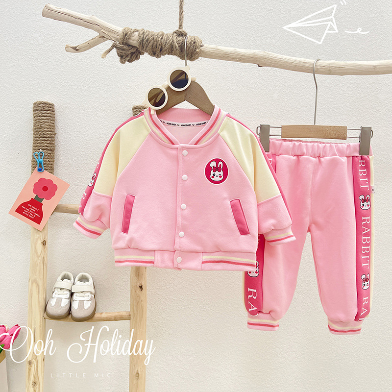 Girls Spring Set 2023 New Baby Spring and Autumn Western Leisure Children's Spring Fashion Baseball Suit Two Piece Set