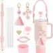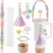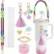 Set di accessori in silicone con impugnatura a forma di margherita, 4 pezzi, manicotto per tazza con cannuccia a forma di nuvola, cinturino colorato, portachiavi con nappa floreale, adatto per bicchieri da 16-30 once
