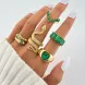 Set di anelli con gemme intarsiate geometriche retrò New Tide Individuality 2024, set di anelli in metallo liquido a quattro pezzi, Paty Jewelry