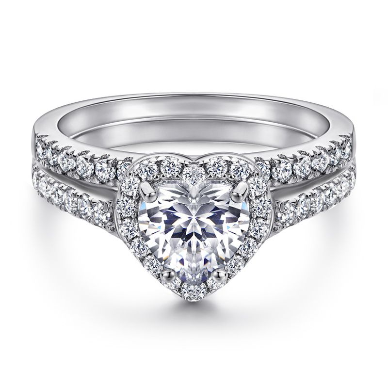 Set di anelli impilabili in argento puro con zirconi a forma di cuore, stile nicchia per matrimoni