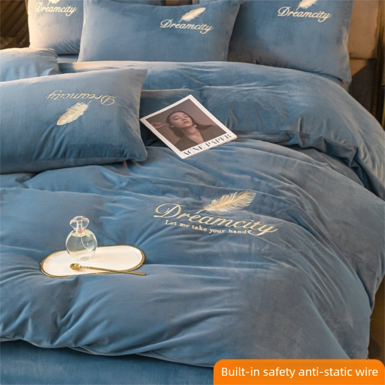 Milk Velvet Bedding Four-Piece Set Winter Thickened Coral Fleece Duvet Cover Double-Sided Fleece Flannel Bed Sheet Three-Piece Set