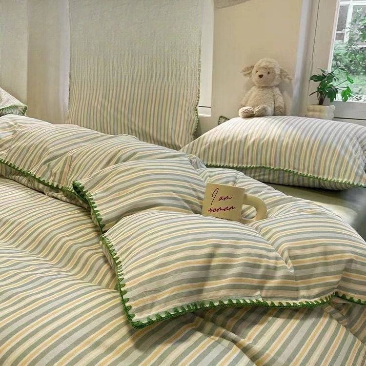 Fall/Winter Thickened 2025 New Pure Cotton Minimalist Duvet Cover, Sheets, Bed Skirt Bedding Set