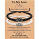 Set di braccialetti intrecciati per coppie di uomini e donne, in corda nera e rossa, intrecciati a mano e regolabili, con scritta "Anima Gemella", in bianco e nero.