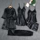 Set di cinque pezzi sexy estivo in seta ghiacciata a maniche lunghe e sottili per la casa da donna, pigiama con scollo a V, accappatoio incluso