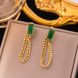 Chain zircon double chain stacked simple green square bracelet necklace earring set for women