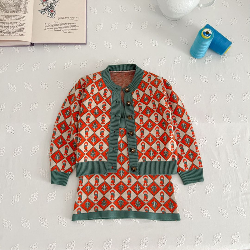 Girls 2023 Autumn/Winter New Western Trend Baby Knitted Cardigan Top Sweater Strap Dress Two Piece Set for Girls