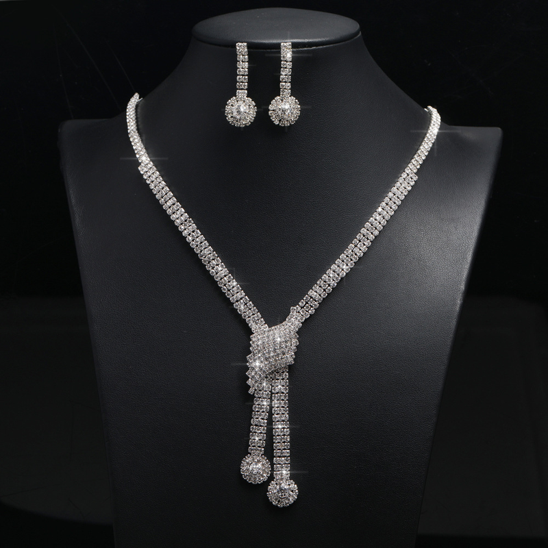Set di Duoxin elettrolitico in lega di orecchini con collana a catena con artiglio di diamanti da sposa