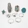 Set di gioielli da donna, anello in lega turchese alla moda, combinazione di anelli turchesi