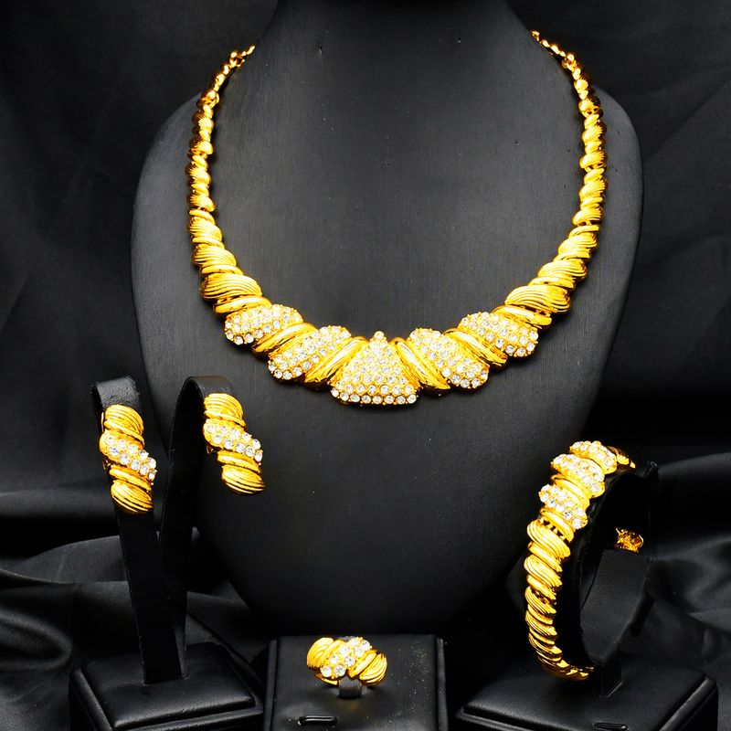 Set di gioielli da sposa premium in oro Dubai da donna con diamanti