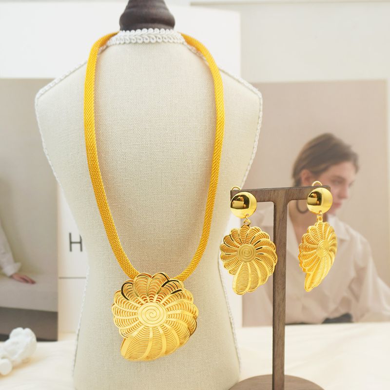 Gilded Jewelry Set Wedding Gift Bridal Necklace Earrings Pendant Dubai Luxury Jewelry Set