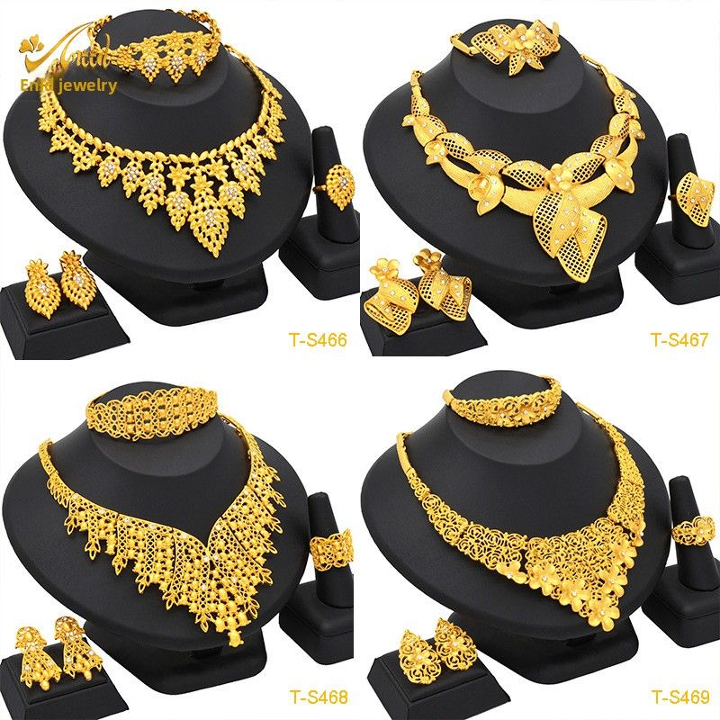 Set di gioielli in oro da donna, gioielli in lega di rame placcati in oro, gioielli da donna placcati in oro, set di collana, orecchini, anello e bracciale da sposa indiana