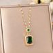 Set di orecchini e collana con anello geometrico classico in zircone e cristallo di smeraldo, gioielli con catena per clavicola di alta qualità.