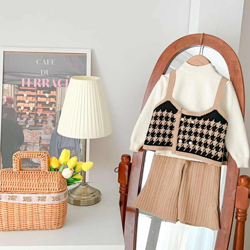 JINYONG Girls' Sweater Two Piece Knitted Flare Pants Set New Little Fragrance Girl True Two Piece Sweater