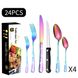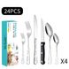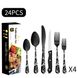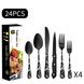 Set di posate in acciaio inossidabile con motivi, coltello da bistecca occidentale, forchetta e cucchiaio, 24 pezzi