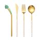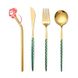 Set di posate natalizie in acciaio inossidabile - 4 pezzi, posate color oro/verde con cannuccia (design moderno e minimalista, lucidate a specchio)