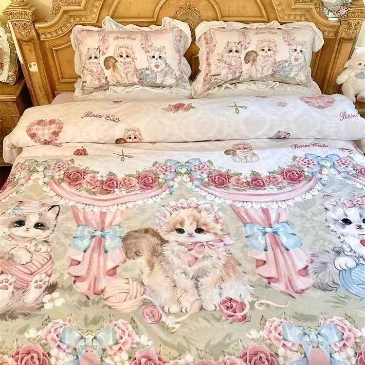 Autumn/Winter Thickened Warm Fleece Four-Piece Set with Coral Fleece Duvet Cover