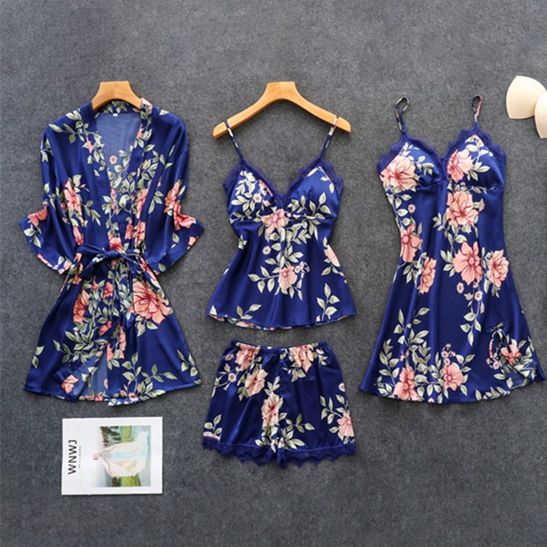 Set di quattro pezzi molto venduto con nastri di ghiaccio, cuscinetti, set per la casa, piccolo petto estivo sexy e abbigliamento romantico