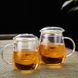 Set di tazze con infusore per tè ai funghi - 3 pezzi in vetro spesso con coperchio in bambù, colino e piattino (sistema di infusione rimovibile da 450 ml per uso in ufficio/casa)