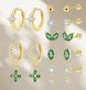 Set di tre eleganti orecchini da donna di lusso in zirconia placcati in vero oro e ottone, di alta qualità e di alta qualità.
