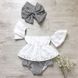 Set esclusivo INS per neonata con top a trapezio, pantaloncini a righe e fascia per capelli