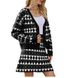 Set in due pezzi lavorato a maglia con scollo a V. Set di maglioni con gonna a trapezio e cardigan lavorato a maglia in stile profumato con rombi