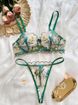 2-Piece ral gerie Set Women Embroidery Boho Bra Thong Underwear Set Intimates Sexy gerie Transparent Bra See Through