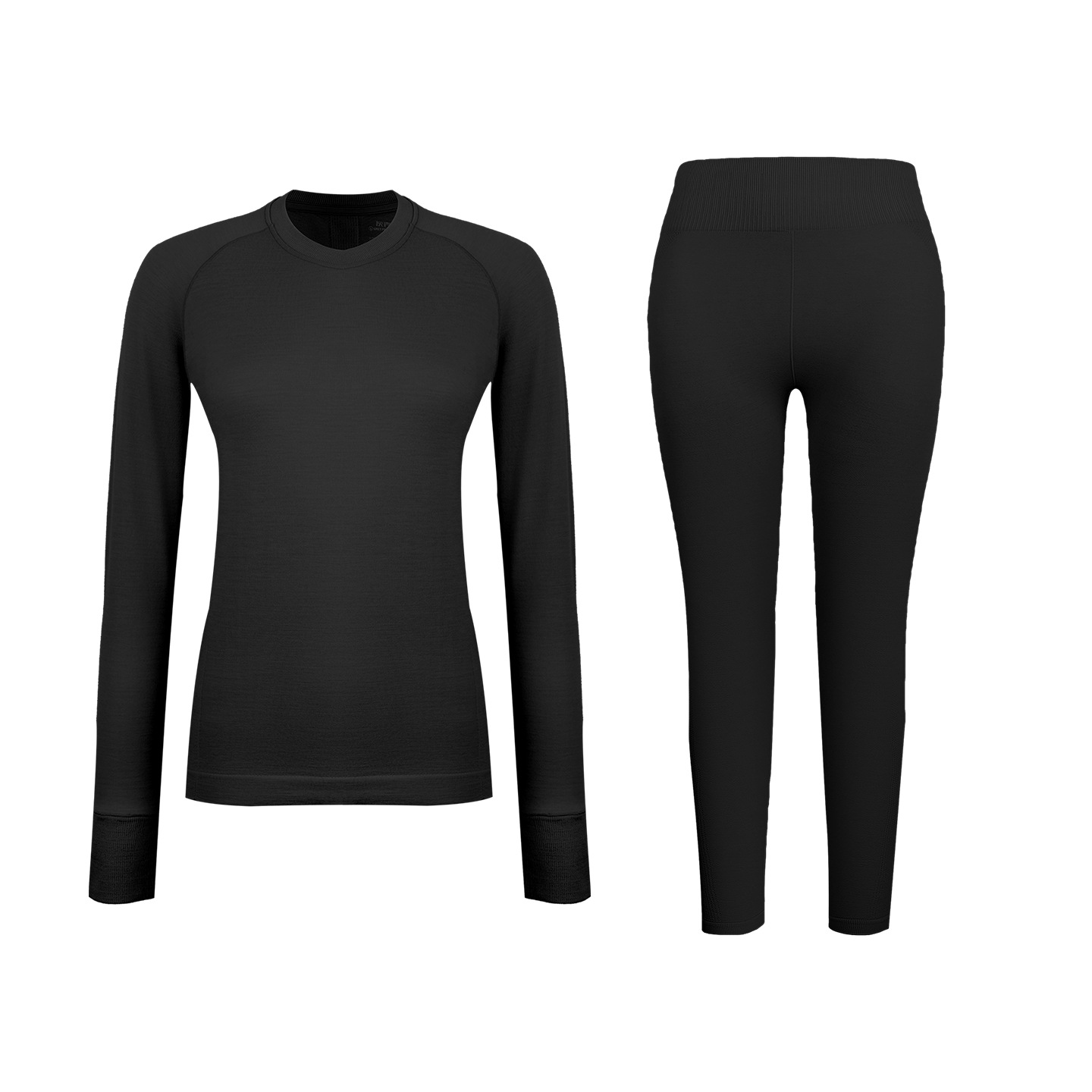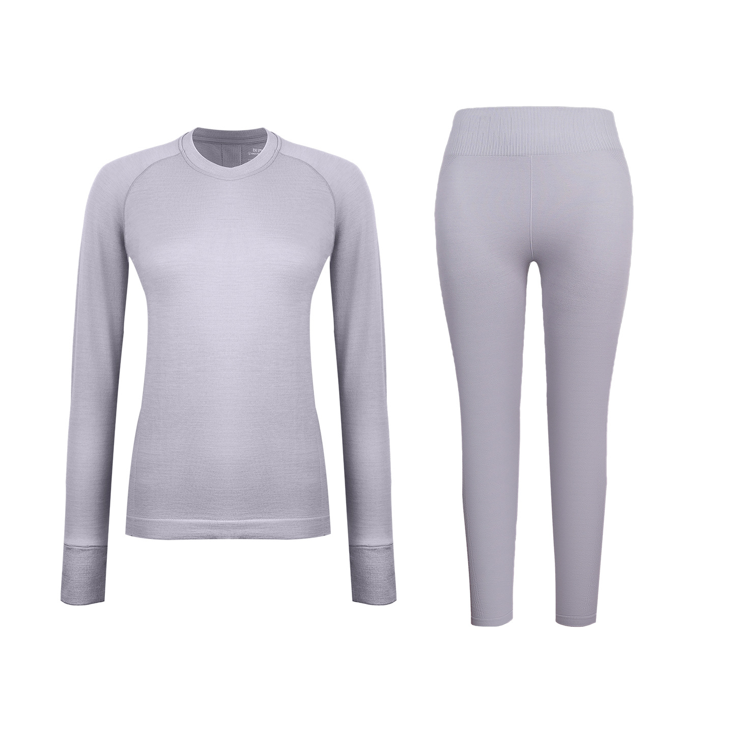 Strato di base in lana merino senza cuciture da 16,5 μm da donna, biancheria intima termica ad asciugatura rapida per lo sci all'aperto, completo a maniche lunghe e pantaloni