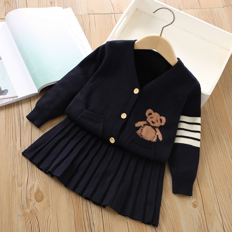 Set maglione da ragazza 2023 Autunno/Inverno Nuova edizione coreana Academy Gonna lavorata a maglia uniforme per bambina in stile occidentale