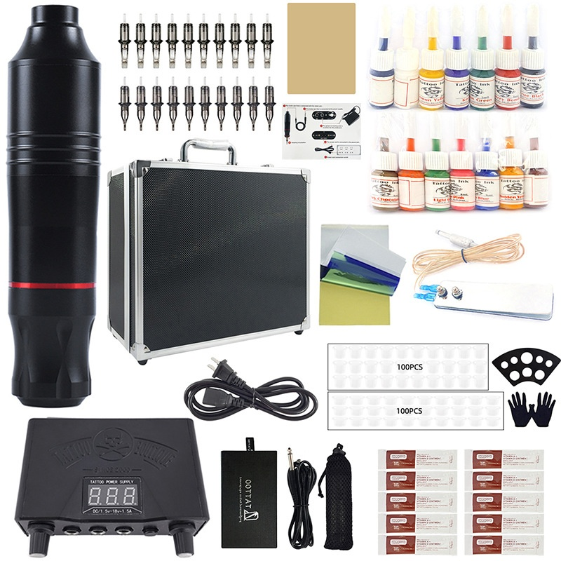 Set per principianti con penna a motore a 14 colori, scatola nera, forniture, bellissima attrezzatura per tatuaggi europea
