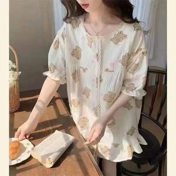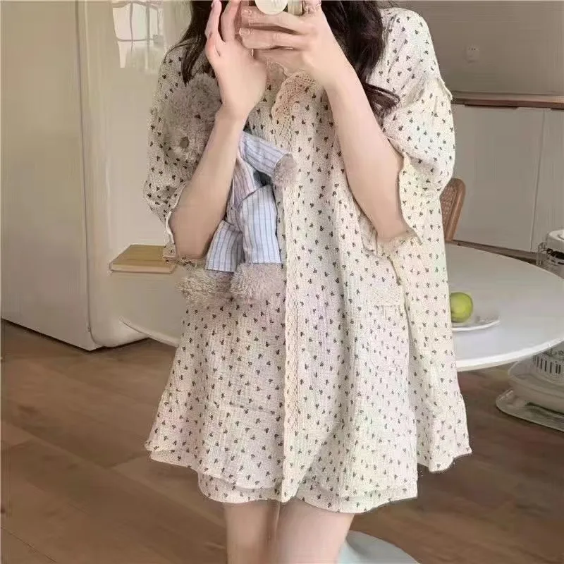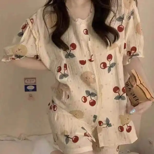 Set pigiama estivo da donna in camicetta a maniche corte stile principessa coreana e pantaloncini indumenti da notte vestiti per la casa della ragazza dolce