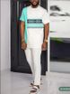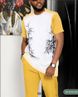 Two piece men's 3D printed classic casual sports set, summer pants trend, elastic thin style, quick drying