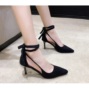 Sexy Strap High Heel Shoes for Women 2023 Spring and Autumn New Style Style Side Air Single Shoes Black Slim Heel Sandals
