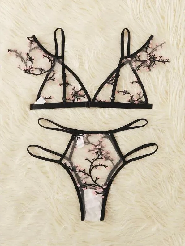 Biancheria intima sexy delle donne se Ricamo floreale Biancheria pura della maglia Se nessun reggiseno Reggiseno senza schienale Bralee sexi Inimaes pizzo