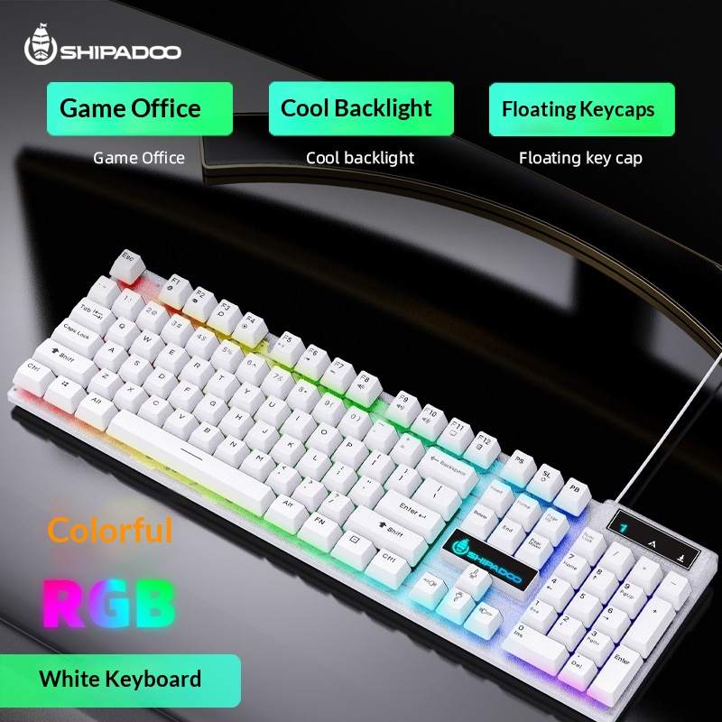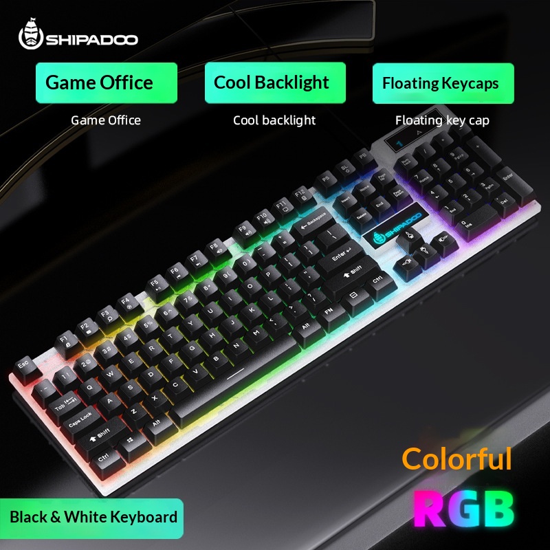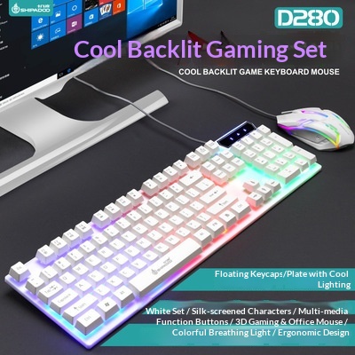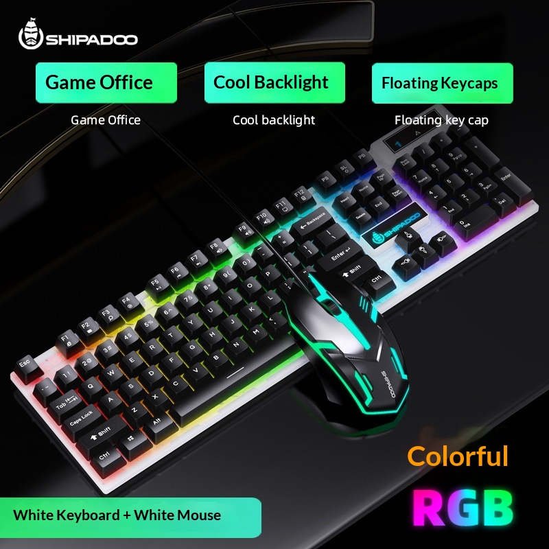 Set composto da tastiera e mouse Shibadu D500 RGB retroilluminati, con cavo USB e sensazione meccanica.