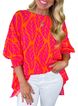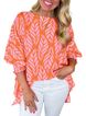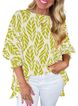 Shiying Autunno Nuovo Fiore Stampato Girocollo Camicia in Chiffon Donna, Felpa con Cappuccio con Decorazione a Balze alla Moda, Top a Sette Maniche