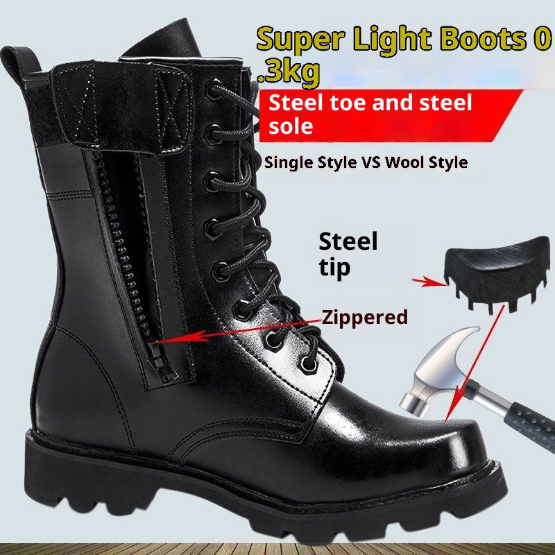 ShoeGlobe Scarpe da trekking alte da combattimento e sicurezza per esterni Stivali da lavoro in pelle Antiscivolo Arrampicata Resistente all'usura Impermeabile Trekking