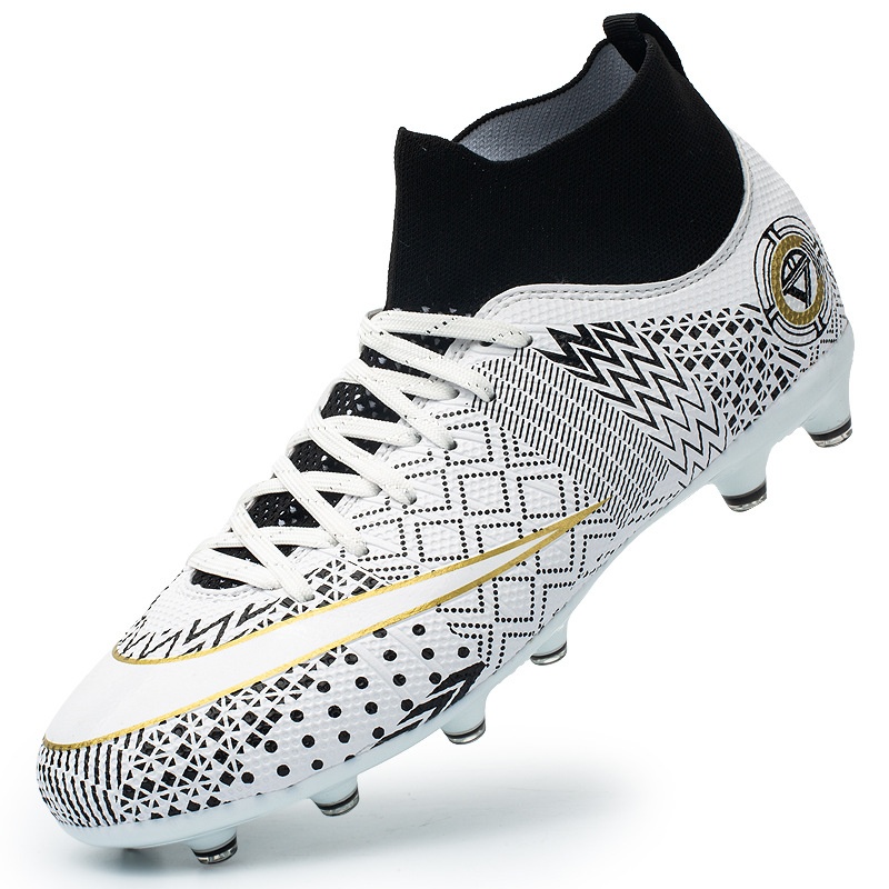ShoeGlobe Zhenzu, scarpe da calcio alte con tacchetti lunghi in TPU per ragazzi e ragazze, modello Mandarin Duck, nere e bianche, dropshipping transfrontaliero