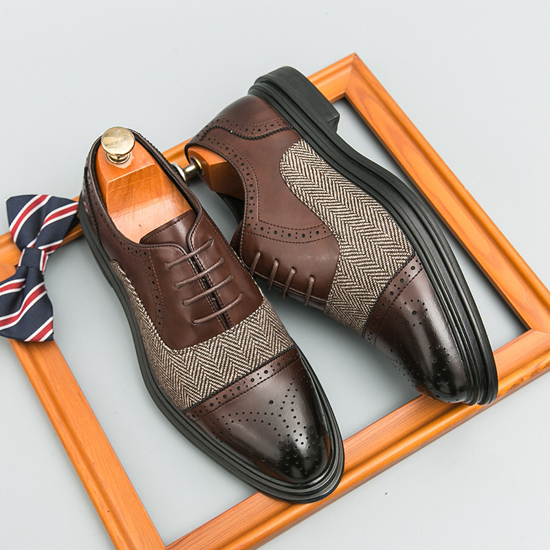 ShoeVault Scarpe da uomo in pelle con suola spessa, formali, casual, stringate, stile Derby, taglie forti, color block, da matrimonio