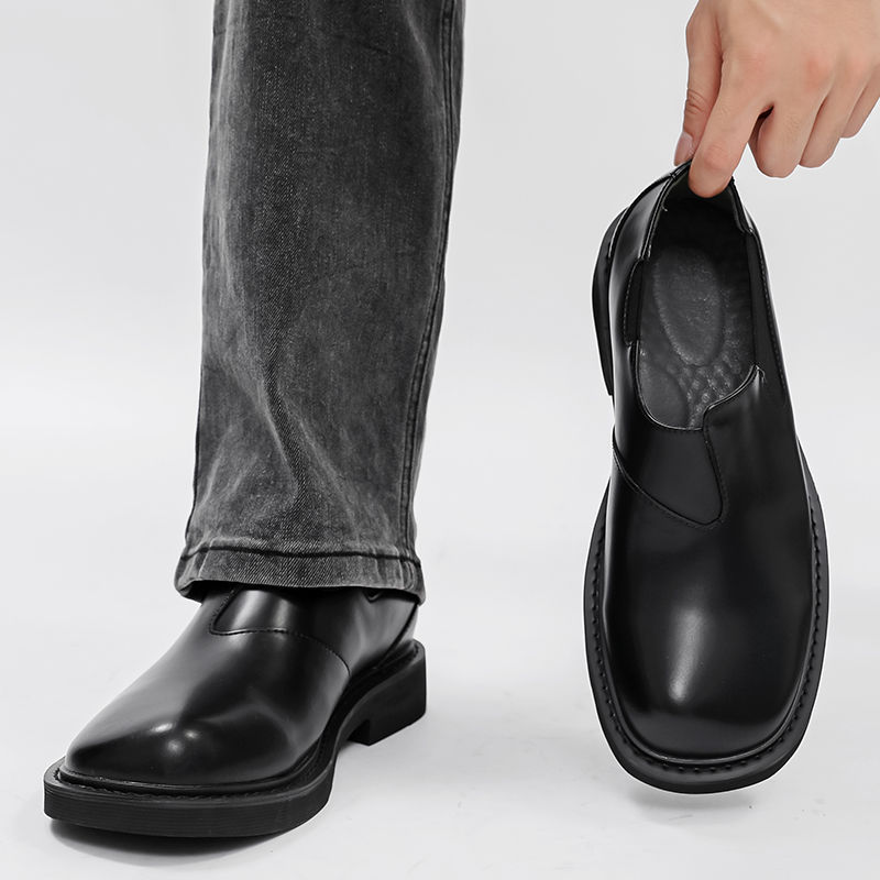 ShoeVault Lazy Commuter, scarpe derby slip-on da uomo alla moda in pelle elasticizzata con punta alta e bassa, per lavoro e guida