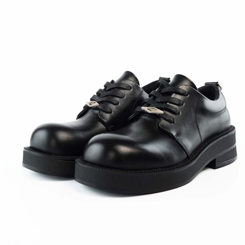 ShoeVault, scarpa derby da uomo in pelle bovina con strato superiore, stile britannico, nera, punta tonda, suola spessa, in pelle, con aumento dell'altezza, per pendolari