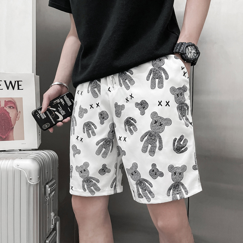 Shorts for men's summer wear, thin style, 2022 new trendy brand teddy bear, five point trendy casual beach shorts for external wear