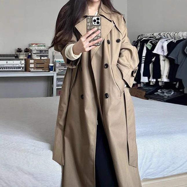 2024 silhouette medium long casual British trench coat for women in spring and autumn, tall standing collar coat with a stylish lapel