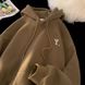 Silver Fox Velvet Korean Version Ins Trend Letter Print Hoodie Couple Style Autumn Winter Casual Sports Jacket for Men and Women