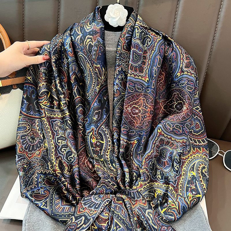 Ethnic style cashew simulation silk long scarf for spring and summer, new thin sunscreen silk scarf with personalized temperament, worn with shawl
