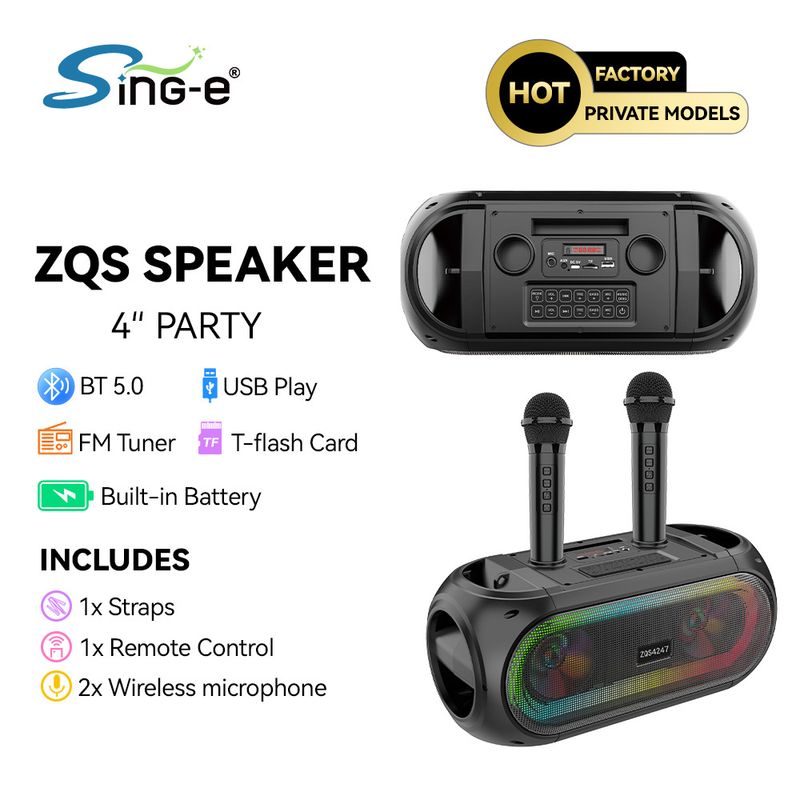 Sing-eZQS4247 Altoparlante portatile per karaoke Bluetooth con microfono Stereo KTV per esterni
